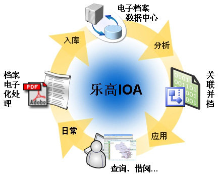 以乐高iOA为基础,结合二维条码或RFID技术,实现对档案的规范管理及协同应用。